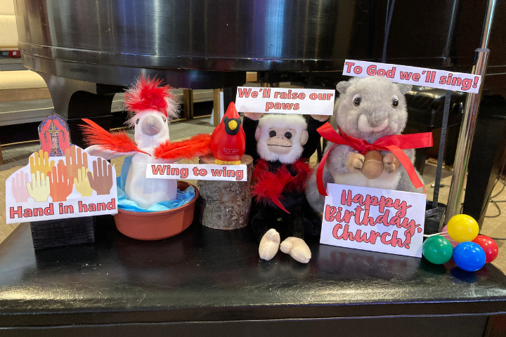 Today is Pentecost Sunday! Earl and friends are showing they are ready to sing Happy Birthday to the church. Hand in hand, Wing to wing, We’ll raise our paws, To God we’ll sing!