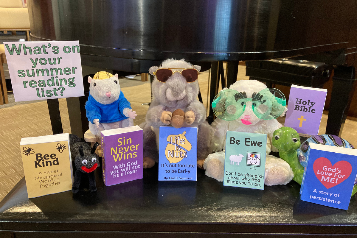 Some of the lambs from Southminster’s Lamb Ministry also wanted to show their spirit. They now often join Earl in sharing his message. Earl affectionately calls them The Lambinators. Other critters also join Earl from time to time, including long-time Southminster resident Holey Moley.