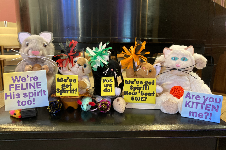 It may be the dog days of summer, but the cats think they own the rest of the year with their enthusiastic showing of spirit for Team God. Two, four, six, eight, who do we appreciate – God!