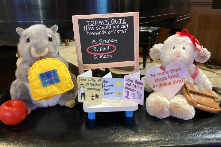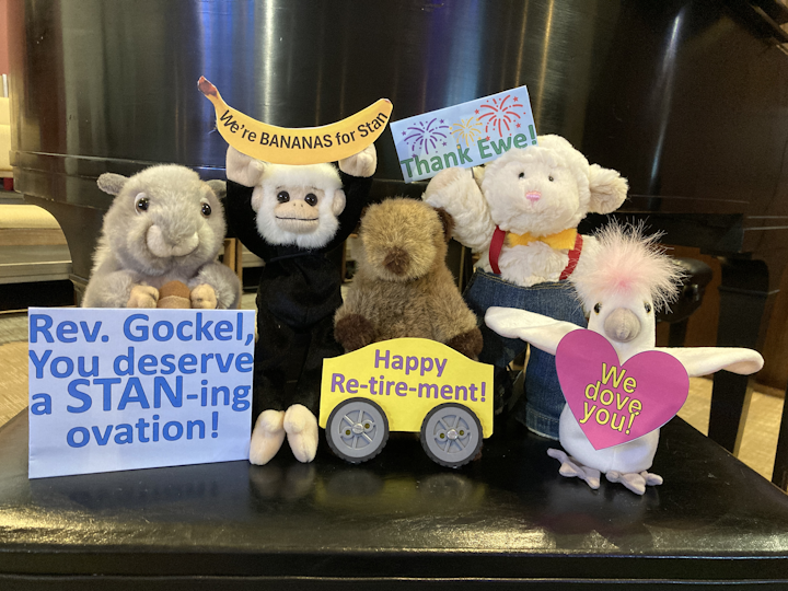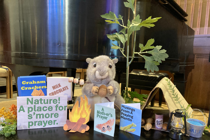 Until March of 2020, many stuffy animals lived peacefully in a corner of the narthex of Southminster Presbyterian Church in Dayton, Ohio. They spent their time watching the people come and go. Then suddenly, most of the people disappeared. They were replaced by a sparsely populated sanctuary and a livestream camera. To fill the seats, the stuffies and their puppets friends migrated into the pews. With a bit of coaxing, a few were bold enough to appear in front of the camera – including a little squirrel named Earl.