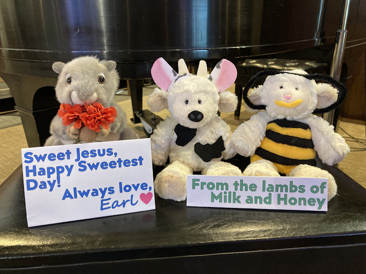 Are you ready for Sweetest Day? Earl is sweet on Jesus and so are the lambs of Milk and Honey.
