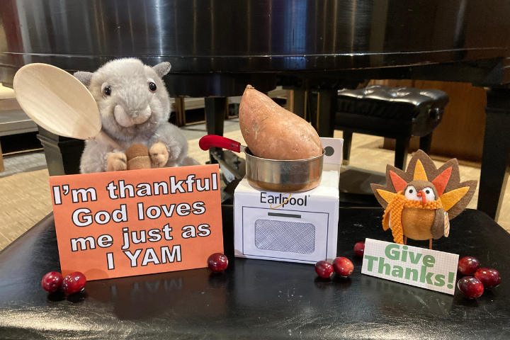 It is a great time of year to think about being thankful. Earl is grateful for a God who always loves him – whether his yams are yummy or not, or his cranberries are tart or sweet. Happy Thanksgiving!